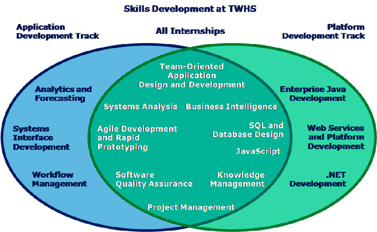 Beyond working in an environment that promotes personal and professional growth, interns at TWHS also know that they are making a positive difference. Through the development of better “thinking” technology for healthcare delivery, our systems improve quality of care, decrease costs, and increase efficiency in a market that demands innovation to meet critical needs. The systems that our interns work with directly improve the lives of countless people and provide real meaning to their efforts.